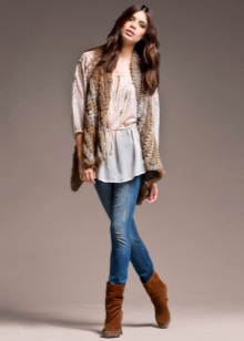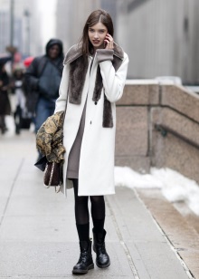 - Faux fur coat. Faux fur is a trend of recent seasons, such a fur coat looks stylish, but is very inexpensive. The main thing is to choose the right length for you. On owners of lush hips, a knee-length model will look better, and a short fur coat will suit girls with a boyish figure.
