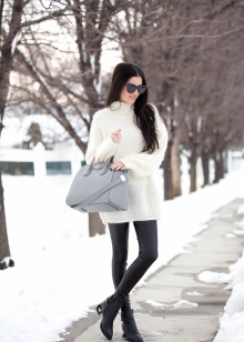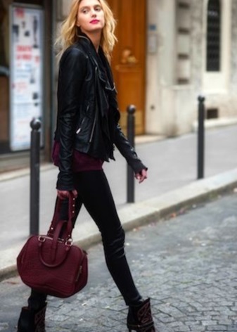 You can wear them with almost any clothing. Stylish minimalism is in fashion today. Leather leggings, a soft oversize sweater, short stiletto heels and a cropped fitted coat.