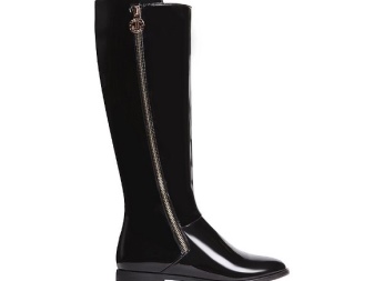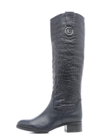 High leather boots with a steady wide heel are a trend of several seasons. The Comfort line is characterized by maximum ease of use. Often the design of such a line becomes a combination of leather textures: the matte lower part, forming a graceful boat, is combined with a narrow shaft, made of leather with a snake texture. The boots are zipped on the side and decorated with the company logo in the form of a voluminous metal applique located at the top of the bootleg.