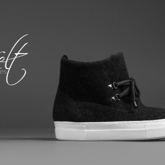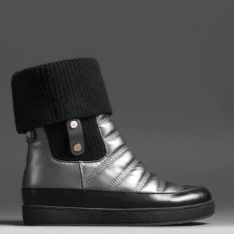 The current models of these groups are short boots, decorated with knitted inserts on the top. This style resembles shoes worn on a toe. These boots are warm and homely. Knitted shaft can be in the same tone with the base or contrasting.