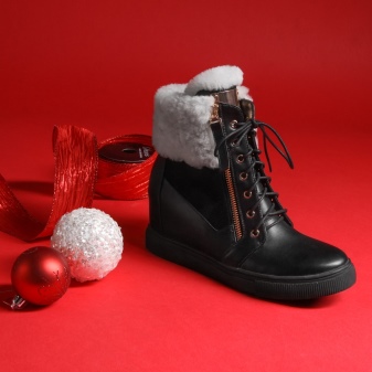 Short boots for the winter are sometimes similar to men's sports boots. They are distinguished by the contrast of leather and suede, are insulated with fur and decorated with light-colored fur lapels.
