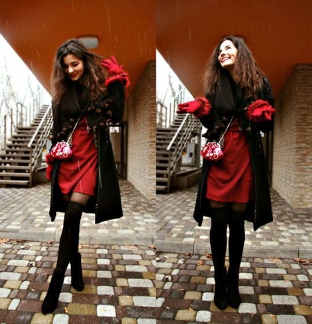 - If you are the owner of a car, and spend more time driving, then with tall black or other colors, winter boots, you can pick up an elegant fur vest or fur coat. They will give your image sophistication, luxury.