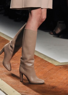 Currently, there are models of boots with thin stiletto heels and even soles, and even with metal heels. Treads with lacing and a wide top are very popular.
