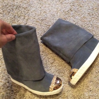 Another original option is a pair of wedges in combination with slightly narrowed trousers. These same boots will look great with shorts above the knees.