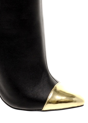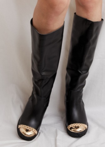 Thus, boots with a golden toe blend equally well with everyday and business looks. A black classic pair of leather or suede with a pencil skirt to the knees will look perfect. At the same time, it is necessary to exclude additional bright catchy details from the image - gold on boots will be enough.