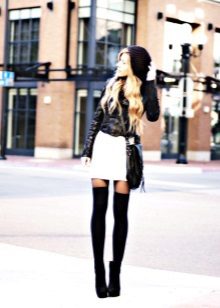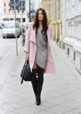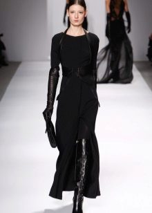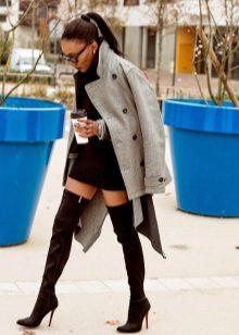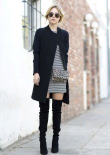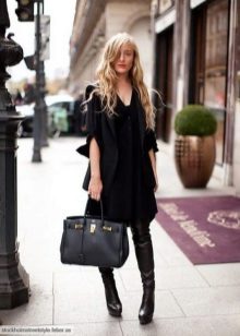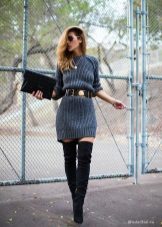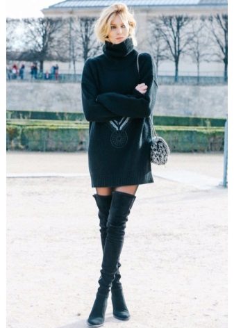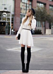 Of course, any dress will look preferable with stilettos, they will make the silhouette and gait more feminine. The length of the dress will depend on the length of the boots themselves. Under the boots, you should choose a dress 10 cm above the boots. But, of course, if the length of the legs allows, then the dress can be much shorter.
