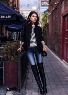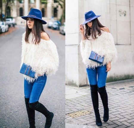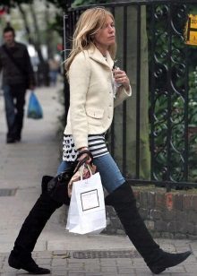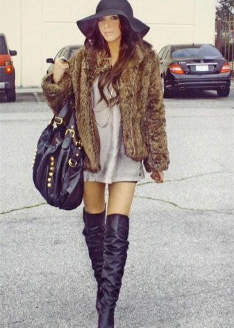 Owners of slender legs are allowed to wear over the knee boots with short skirts and dresses. Such an outfit will emphasize the sophistication of the figure.