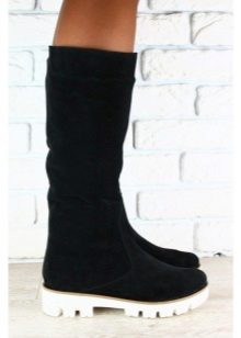 If speak about suede, then with its texture, it makes the foot more accurate, but more demanding in care. In suede, the last two seasons are mainly represented by boots in popular colors - black, pink, gray. Suede patterns make the look more feminine.