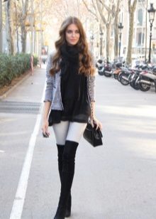 But owners of long legs can choose tights of different colors and textures for black boots.