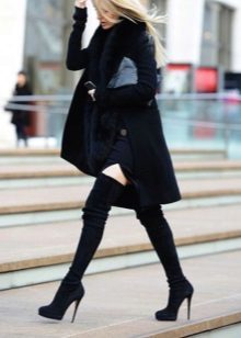 Black boots are ideal for contrasting colors - red, white, beige. Therefore, if you choose a coat, it is better than such colors. If the boots have fur trim, then it should also fit the outerwear in texture or color.