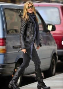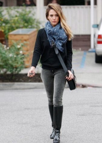 But choosing boots, you must first count on how much you have to walk. If you lead an active lifestyle or just walk a lot of work, then opt for flat boots. Skinny jeans, trousers, voluminous sweaters or cardigans are suitable for boots below the knee with or without small heels.