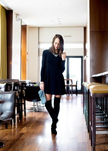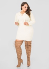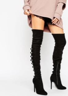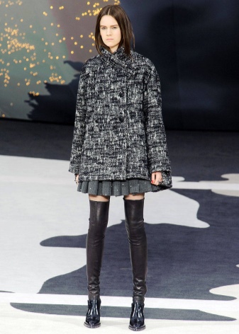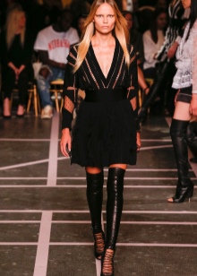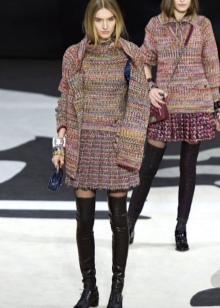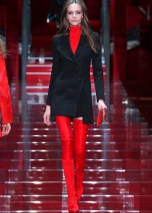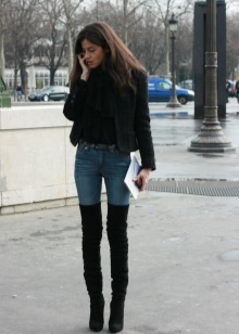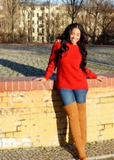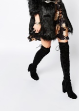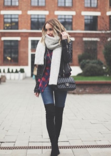 If the jacket or dress has a deep neckline, then such an outfit, in combination with tight-fitting boots, will look too defiant. Also, do not combine stocking boots with wide trousers and jeans, and even more so fill them in boots.