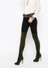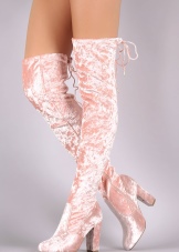 Boots that reach the thigh, or just above the knee, are found in both basic colors and various colors. Color patterns are typical for suede or velvet materials, leather boots often have more restrained tones.