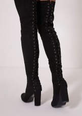 High boots made of fabric look no less original. These boots complement the festive look well and become a good option for shoes for a special occasion. However, due to the use of textiles, they are impractical and suitable exclusively for dry weather. A high-heeled fabric boots will be a win-win option.