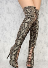 Designers also show their imagination in choosing materials for creating tight-fitting models of boots. As always, the palm comes from models of stretching leather. It can be both smooth material and imitation of snake skin, which looks very daring.