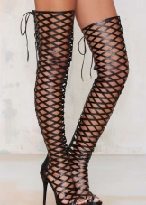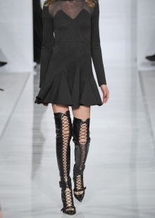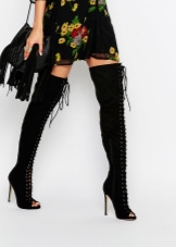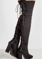 Lacing, which today is one of the trend areas in shoe jewelry, did not pass by long tight-fitting boots. She can adorn the front boots along the entire length of the bootleg. Lacing behind the knee looks very piquant.