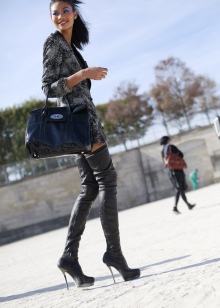 Picking up boots of this style for your wardrobe, the girl will look feminine and attractive. Long boots with an ankle hiding under the hem of the dress look very sexy to match the stockings, in honor of which they were nicknamed.