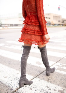 A correctly selected image with boots above the knee length will look very stylish and elegant, and will also make the girl the object of attention of many men and women around.
