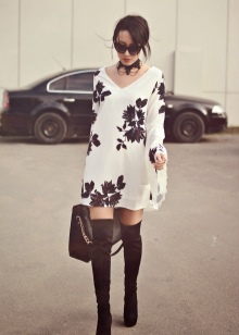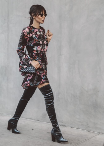 Skirts and dresses with a length of midi and maxi are best left for other shoes, the optimal length would be a skirt a couple of centimeters longer than the top of the boots. Summer light dresses with boots that are quite closed will look ridiculous.