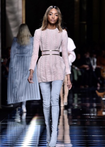 Leggings, leggings and skinny jeans are another one hundred percent option for girls with beautiful slim legs. You should also carefully select the model of boots for the trouser ensemble, so that the image looks harmonious and complete.