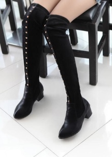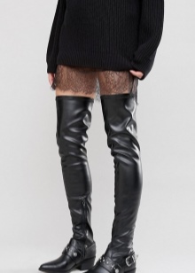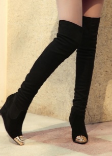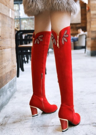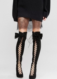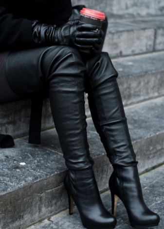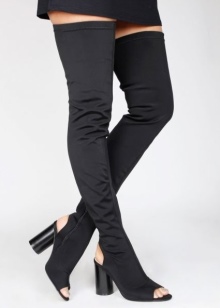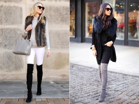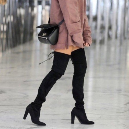 Stocking boots are universal, however, there are exceptions. Girls with uneven legs are better off avoiding such shoes, as it will emphasize your little flaw. It is also not recommended to choose over-boots and stocking boots for chubby girls of small stature. They are better off looking below the knees.