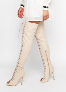 If the girls are very thin, then boots to the middle of the lower leg are recommended, as they will visually add volume. You can buy shoes of medium height with lacing, it will "make heavier" and ideally "pull" the boots over the foot. Light shades, including white or light beige, are suitable for skinny ones. True, these shoes should be worn in sunny weather. White sophisticated boots in the midst of dirt and dirt on them will look ridiculous.