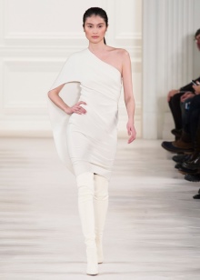For an evening out, a fitted dress from pleated fabric with an asymmetrical hem is also suitable.