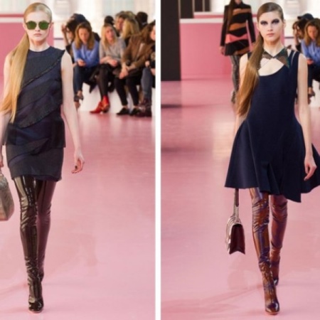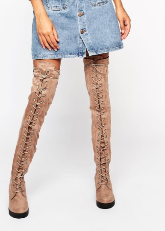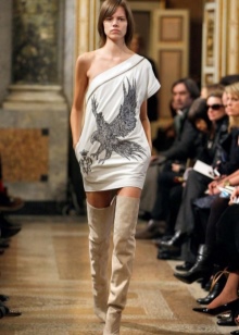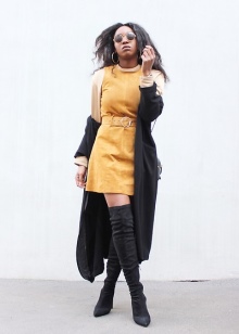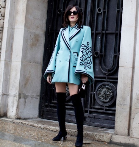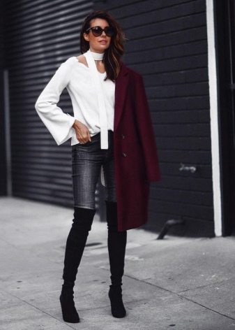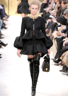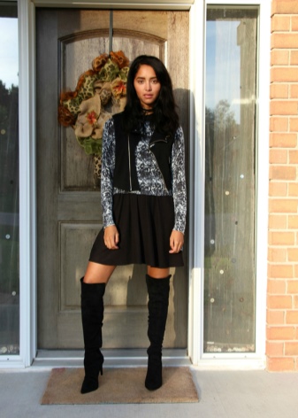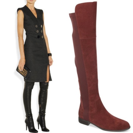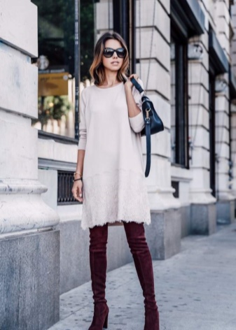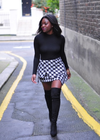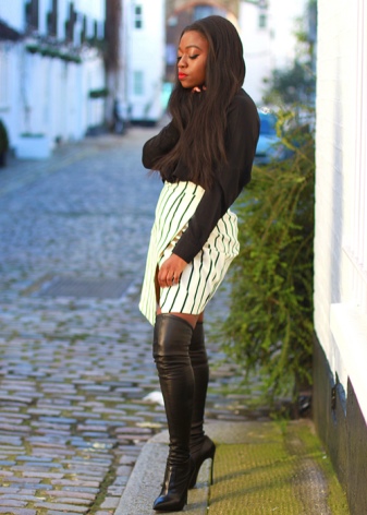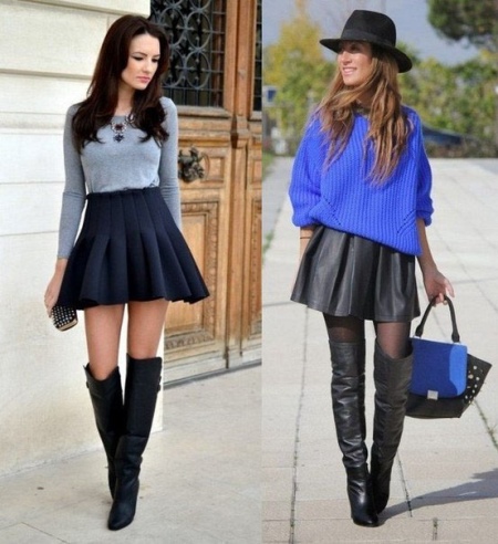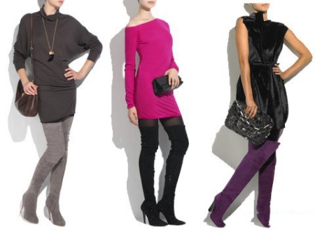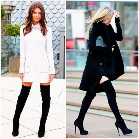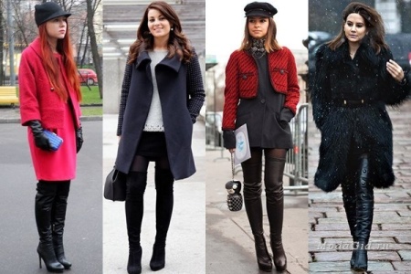 And now about what can and should be worn with high boots. Skirts and dresses will reveal all the beauty of legs and boots. Ideally, if the hem is slightly lower or slightly higher (literally a couple of centimeters) of boots.