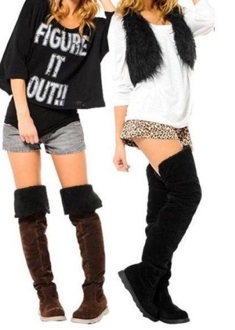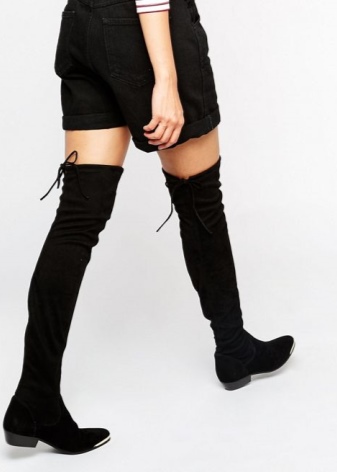With boots (high or medium length), shorts will be interesting. But no need to choose short models. Stocking boots are already a provocation, and with tight mini-shorts they will look vulgar.