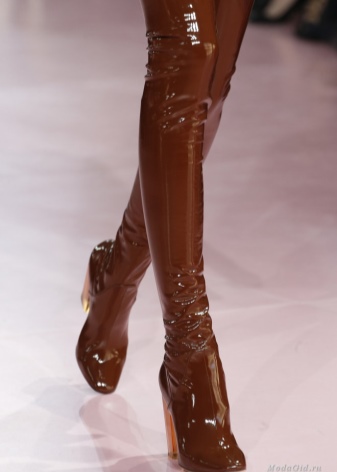 Patent leather boots are featured in the Balenciaga collection. In them you will attract attention at any party.