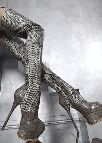 Stocking boots are sewn not from ordinary, but from soft stretch leather. She stretches perfectly and completely fits the leg. Embossed leather models, imitation under a snake or crocodile are also relevant.