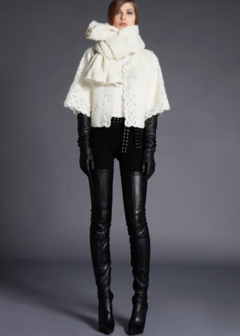 A white tunic just above the miniskirt in combination with a black short cloak will create the image of a fashionable city woman.
