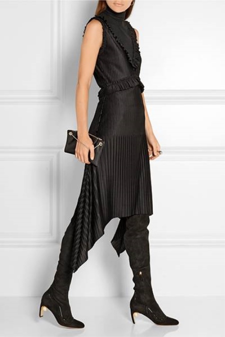 - Tall suede boots should be of the same high quality, otherwise the stockings will crawl down. If the shoes are faux suede, they should be duplicated.