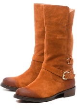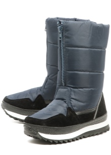 Women's high boots are more often performed in dark shades of genuine leather. The style has a thick platform with a deep tread and an average height of the shaft. In addition to insulating the inside, the model is decorated with short fur and straps around the top. The fur can be in tone with the product or contrast with it. Reinforced back securely fixes the foot in the correct position, eliminating its deformation and sliding.