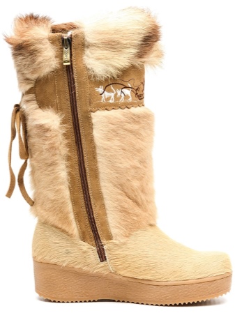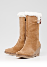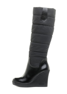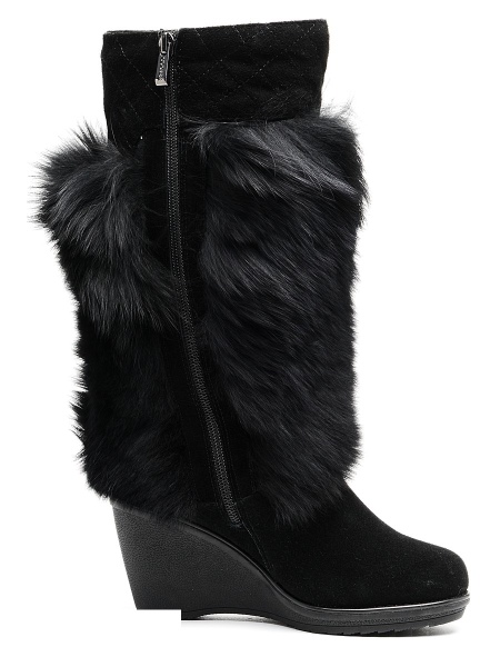 Models on a wedge are decorated on the top with fur with long nap. They are made of their velvety suede. As a final touch, fashion designers decorate such boots with a bow with metal rhinestones.