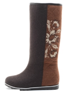 Short boots are often decorated on the upper edge with an embroidered pattern and rhinestones. Beautiful pairs of shoes with wide heels with a height of 4-6 cm are very comfortable and stable.