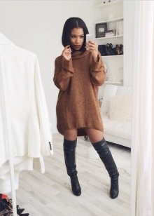 To make the image look stylish, and there was not a hint of vulgarity in it, choose the most democratic top. It all depends on the style you choose - it can be a shirt and a blazer, a sweatshirt or an extended sweatshirt.