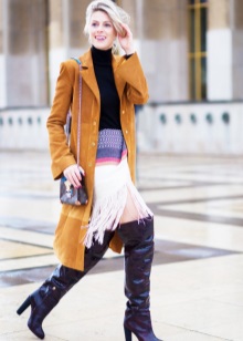 Very beautiful material that is perfect for dry autumn. It is not recommended to wear them in the rain, although at the moment, manufacturers make suede boots less susceptible to moisture and various kinds of pollution.