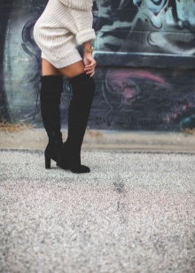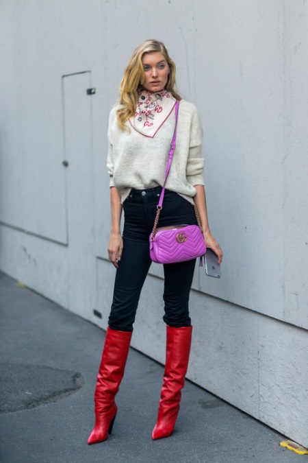 Infinitely long, covering the knee, elastic high boots in fashion is not the first season. They look very impressive, but not for everyone. This model will look good only on girls with long slim legs. If you are not tall, then you can try wearing high-heeled stocking boots that reach a maximum of the knee.