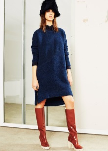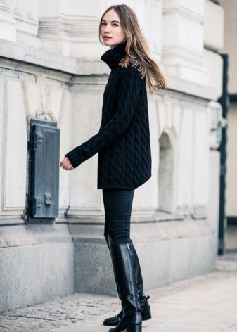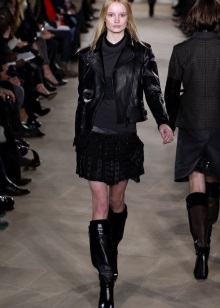 Another model with a wide shaft, but in this case, the boots are made of thick leather, which holds its shape well. Their length, as a rule, ends in the knee, may be slightly lower, but not higher. This is also a specific style that is suitable only for slim girls, because visually makes the calves wider than they really are. For owners of miniature forms, this will be a profitable game in contrast, but for full girls they will make the figure even heavier.