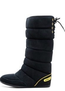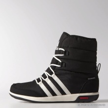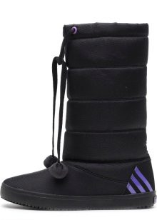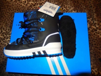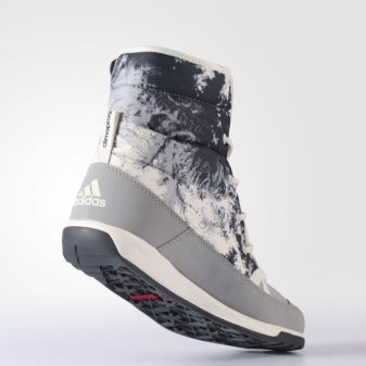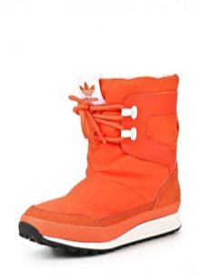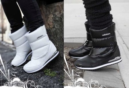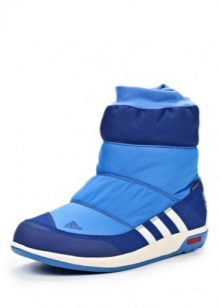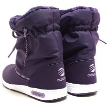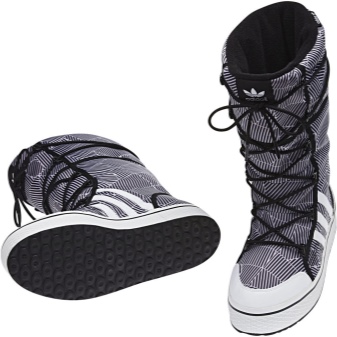 - Among the range of adidas from Adidas there are models with lacing, which performs not only a decorative function, but also a practical one. A similar element is tightened around the foot, due to which the snow does not get inside, and the heat is even more efficiently stored inside the shoe