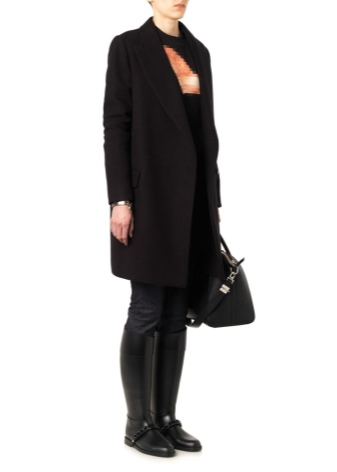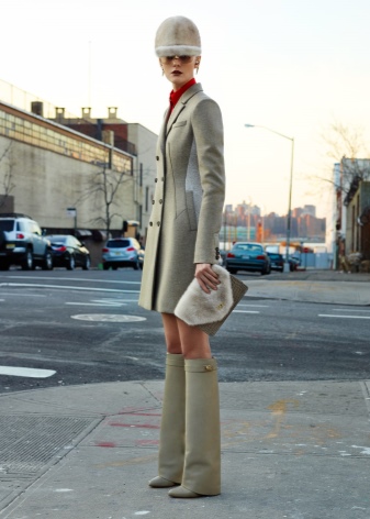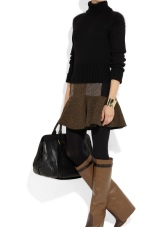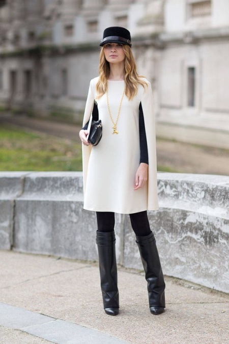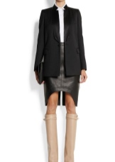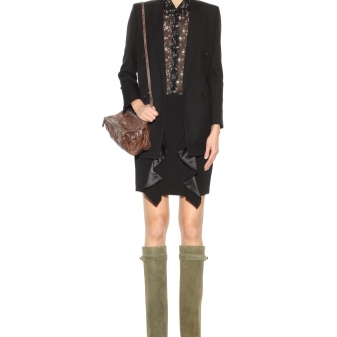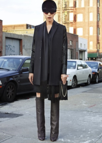 A classic look can be created by suede products with medium heels, tight black trousers, a tunic and a brown jacket of a loose cut. Boots of laconic forms go well with a coat on the floor, outerwear of medium length or a fur coat.