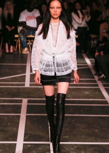 Fans of classic couturiers offer elegant high-heeled boots decorated with lacing, stocking boots made of soft leather or suede.