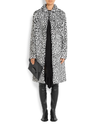 Pair brown leather pipe boots with a pair of blue jeans and a leopard overcoat.