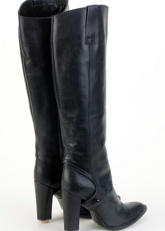 Equally popular are boots with high thick heels with a sling that reaches the base of the heel. Such options are decorated with buckles and straps on the bottom of the shaft.