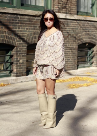 Chain boots are perfect for jeans or trousers, creating a casual look.Bright fashionistas like to combine such a style with knitted dresses of medium length.