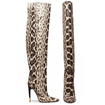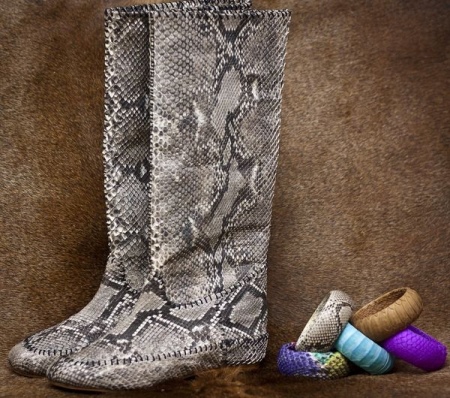 - Boots made of python skin are a versatile, effective and stylish product. Not every woman can afford such shoes, but if you did get them, you are a bright personality who has a great sense of style.