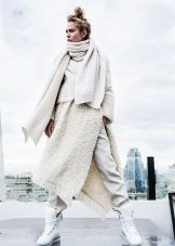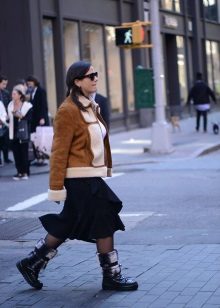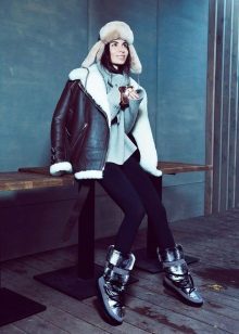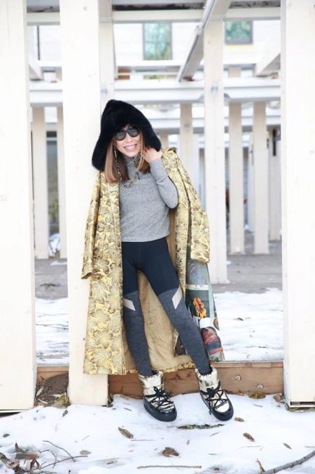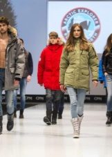 At the CPM exhibition in Moscow, the Jog Dog brand organized a show with designer Ksenia Chilingarova, who represented her Arctic Explorer collection. This tandem turned out to be quite successful, and in the presented photo you can see one of the ensembles of the show. An elongated parka with a bright cold lilac hue, classic skinny boots and Jog Dog boots with voluminous lacing and a leopard print will captivate all lovers of casual looks.