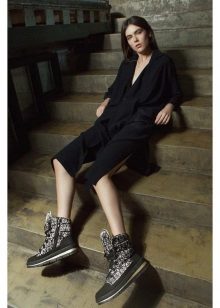 Models that use a lacing along the entire length of the bead as a fastener look a little rough and aggressive, but their sole, cushioned sole and comfortable anatomical insole create incredible wearing comfort. In addition, with such non-feminine shoes, you can create very stylish images in an urban style, where playing in the sharp contrast of rudeness in shoes and clothes and femininity in silhouette, you get a surprisingly delicate ensemble that demonstrates the fragility of a girl's figure and even naivety.