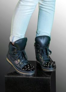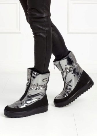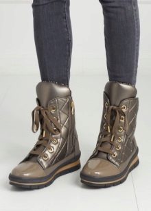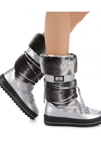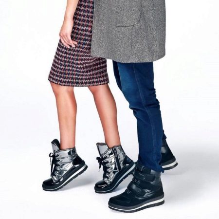 So, models for girls have a wide range of shades - snow-white, beige, pink, gray, yellow, silver, gold and others. Boy's boots are presented in more modest colors - gray, blue black. You can find unisex models, which by color are not subdivided into models for boys and girls. An example of this is boots with various prints in blue tones. Among the girls’s boots there is a model with a leopard pattern.